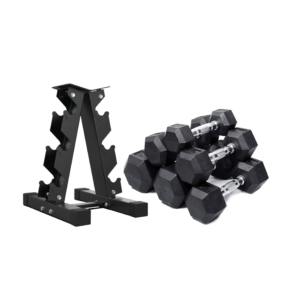 Hex Dumbbell Set(5-12.5kg) with A3 Rack, Rubber Coated Weights