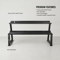 The two-level design maximises vertical storage, allowing you to free up valuable floor space without compromising accessibility. Whether placed in a dedicated home gym, garage workout zone, or multi-purpose room, this weight rack helps eliminate clutter and creates a more focused training atmosphere.